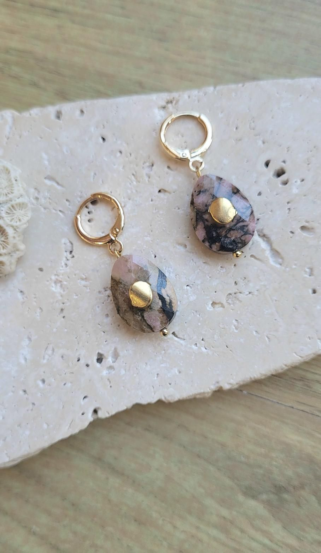 En plaqué or et pierres fines de Rhodonites facetées et pastilles doré à l'or fin .