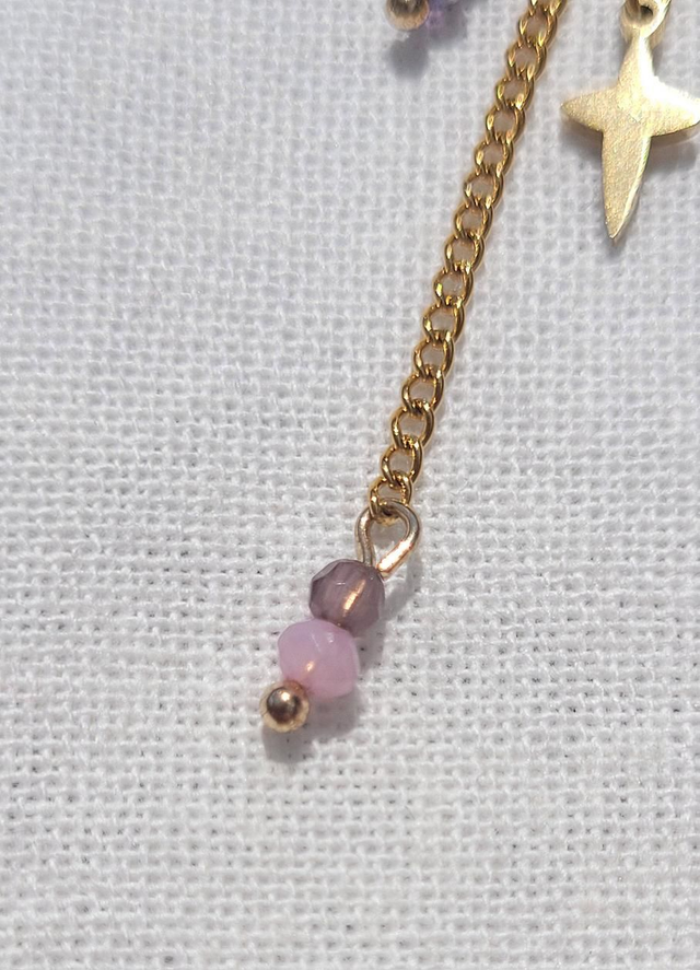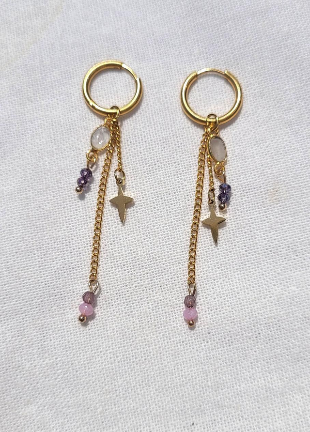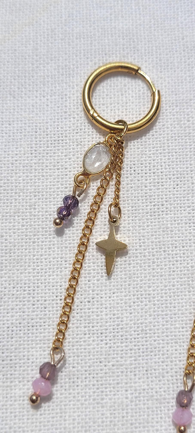 En plaqué or, cristal de roches brutes et perles zirconiums.