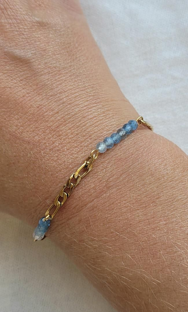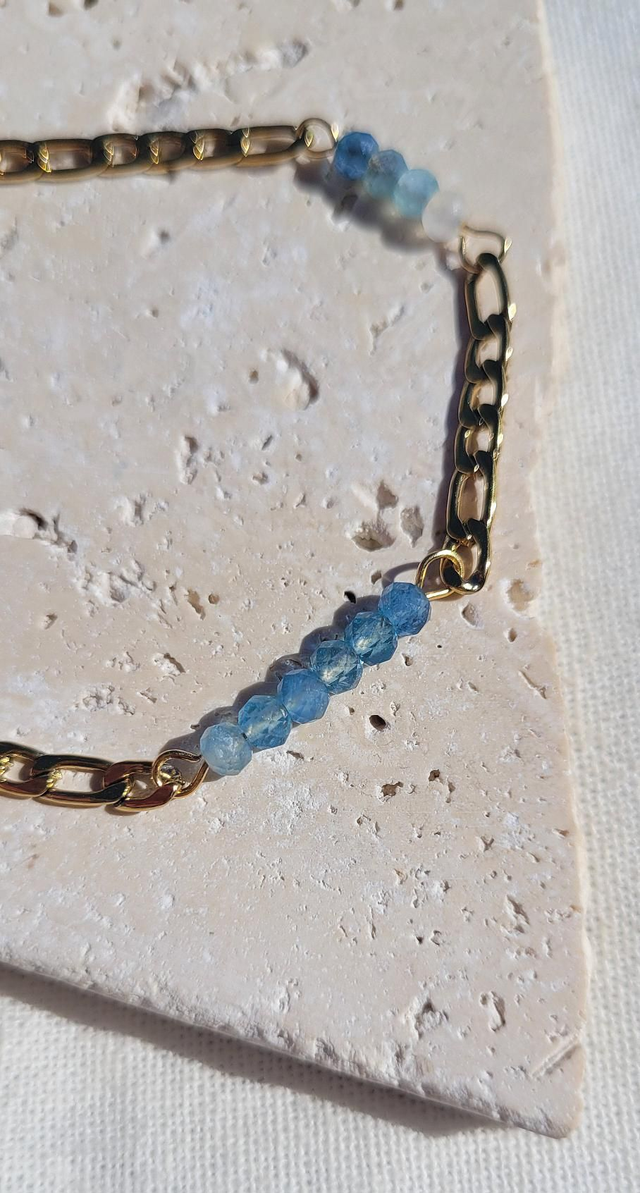 En acier inoxydable plaqué or, pierres fines d'aigues marines